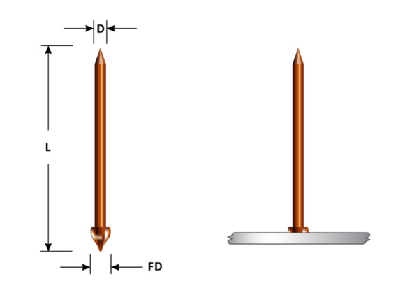 A specialty type of Capacitor Discharge (CD) pin, the Powerbase® pin can be welded through mill scale, rusted or painted surfaces, without having to grind/clean the base metal. After the pin is welded to the surface, a self-locking washer is installed to secure the insulation.